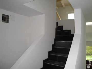 Treppenhaus gipsen und Abrieb Villa Entrée